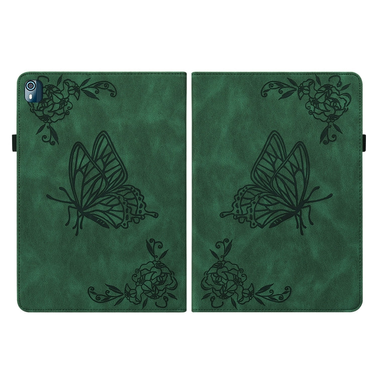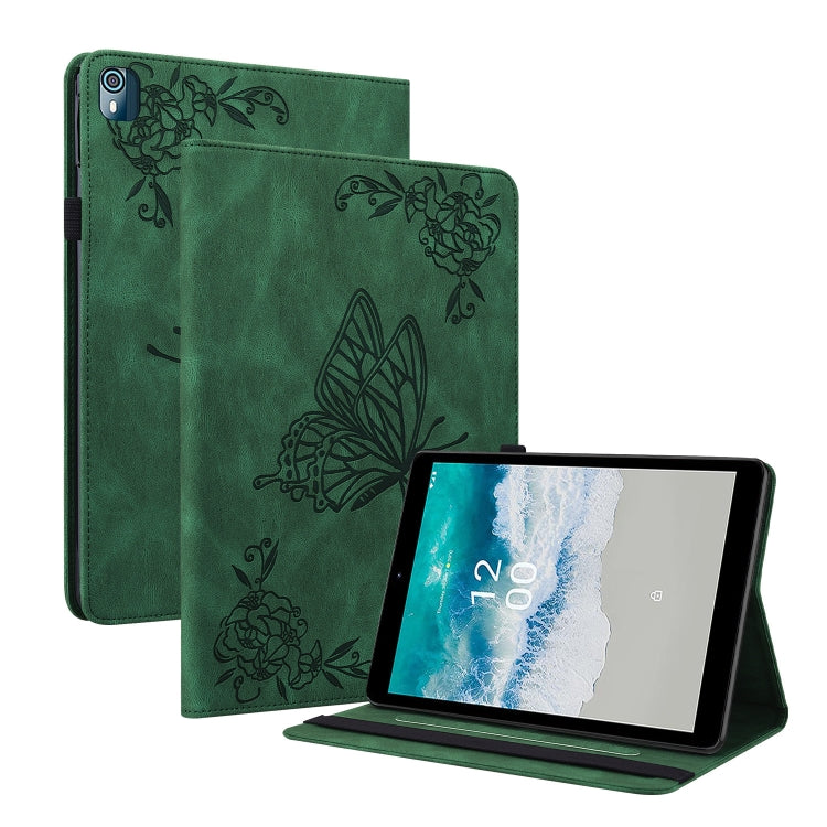 For Nokia T10 Butterfly Flower Embossed Leather Tablet Case(Green)