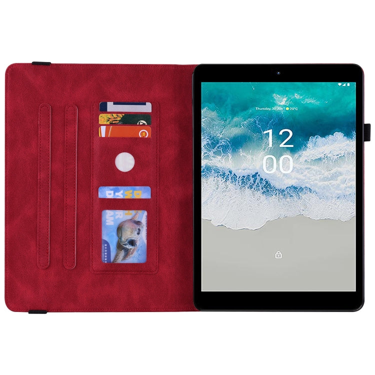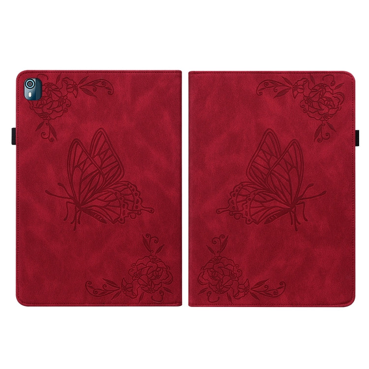 For Nokia T10 Butterfly Flower Embossed Leather Tablet Case(Red)