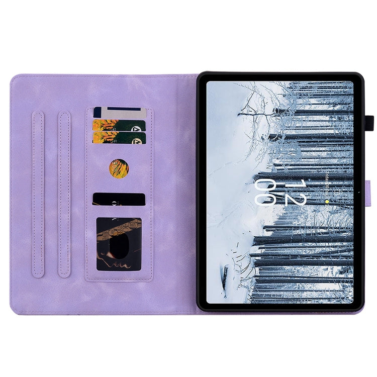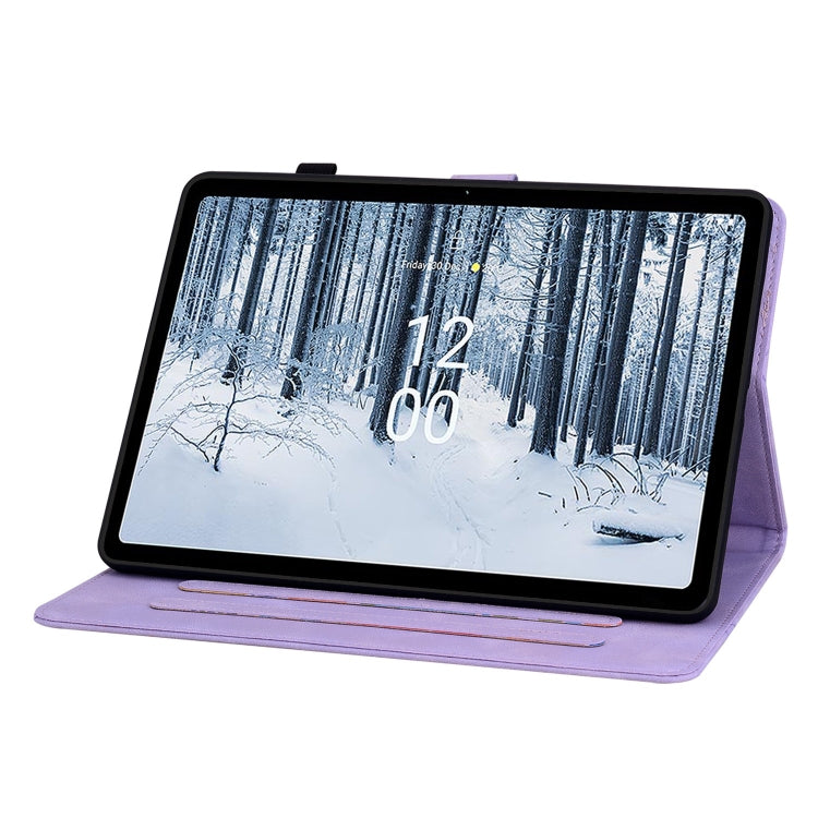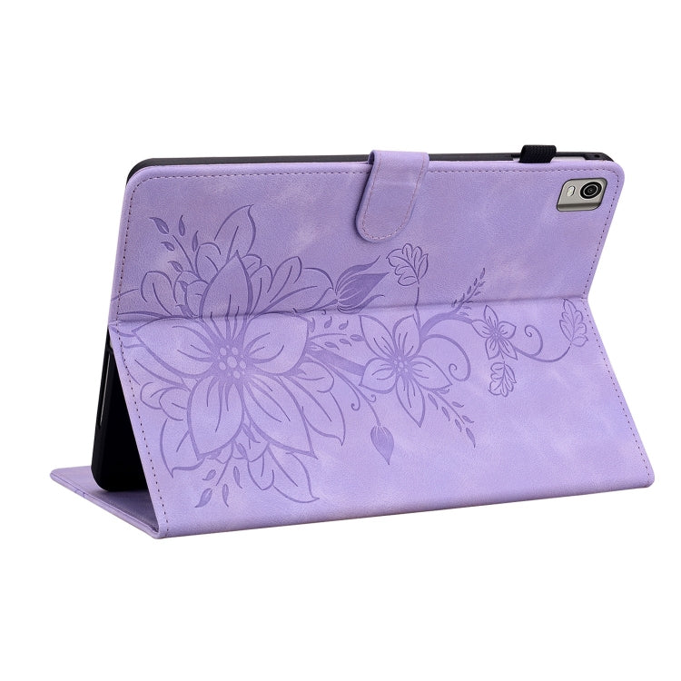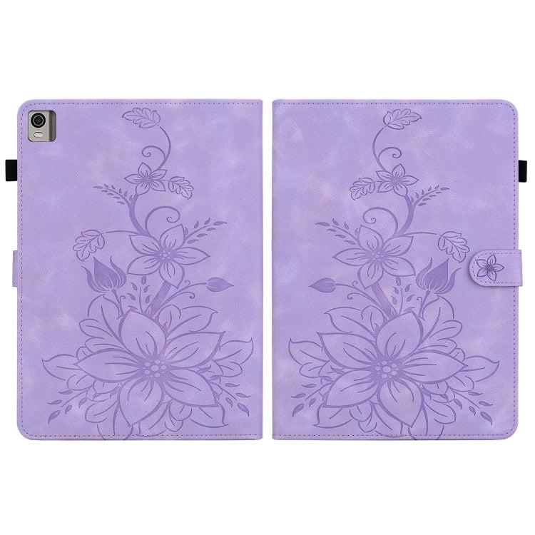For Nokia T10 Lily Embossed Leather Tablet Case(Purple)