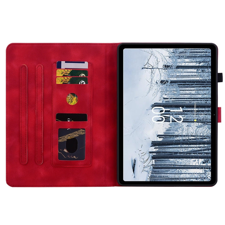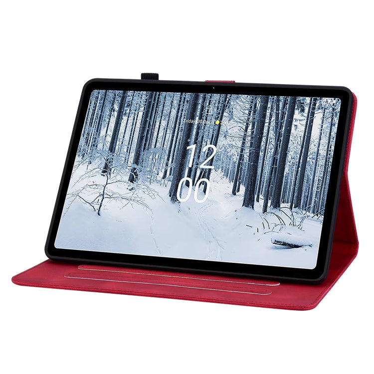 For Nokia T10 Lily Embossed Leather Tablet Case(Red)