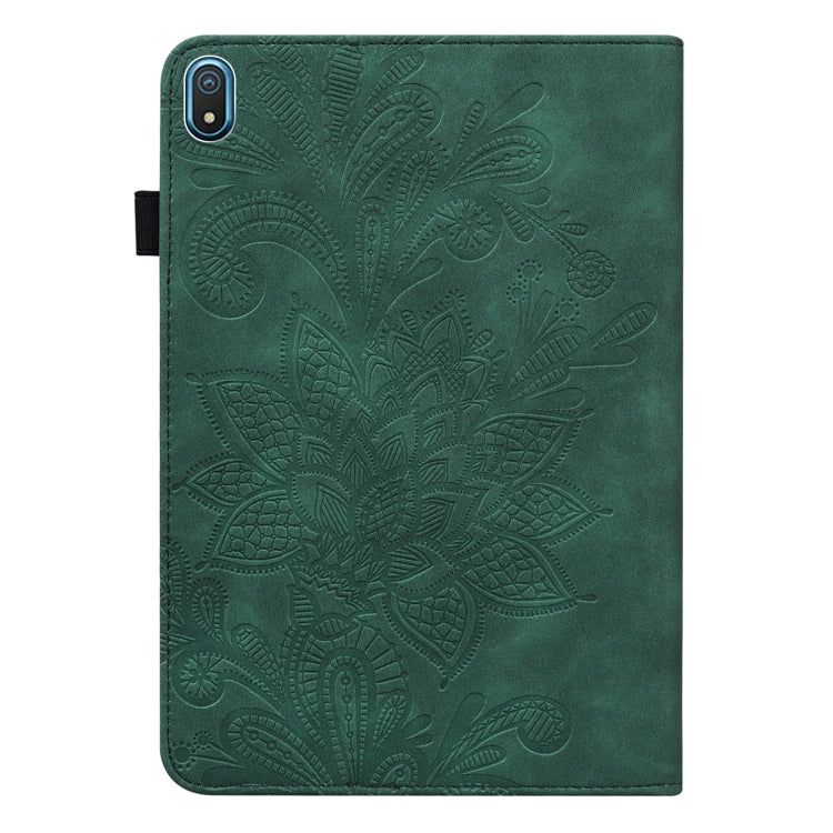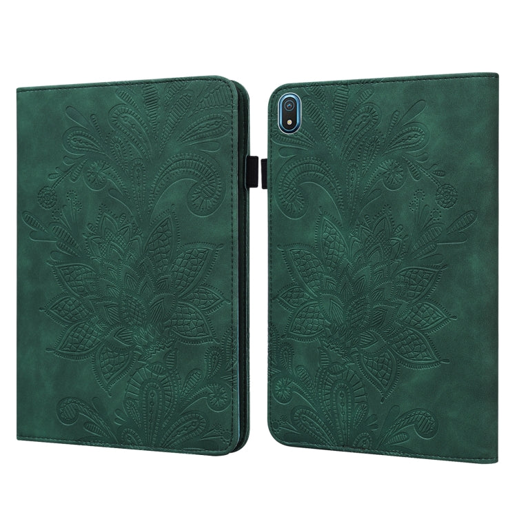 For Nokia T20 10.4 2021 Lace Flower Embossing Pattern Leather Tablet Case(Green)