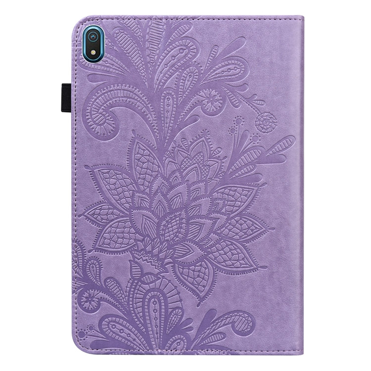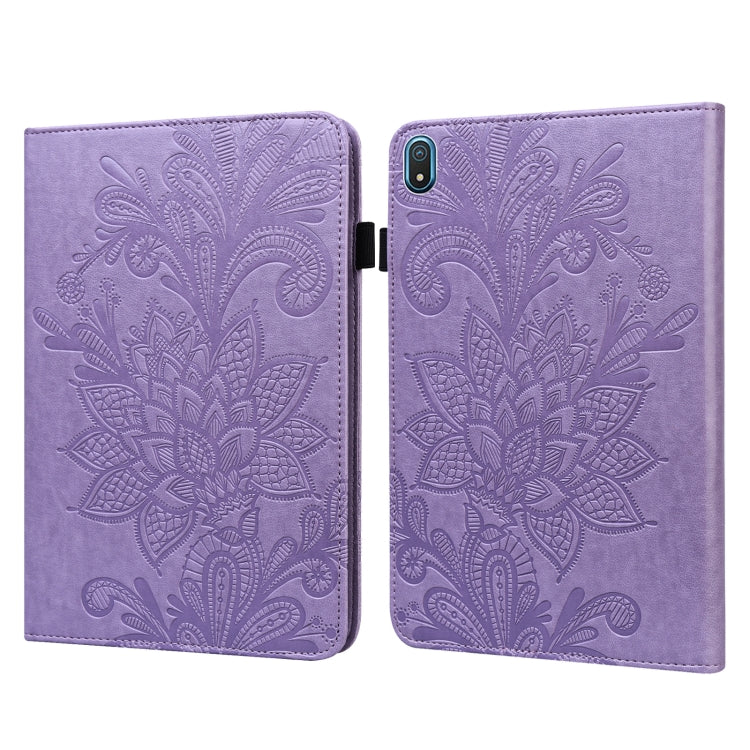 For Nokia T20 10.4 2021 Lace Flower Embossing Pattern Leather Tablet Case(Purple)