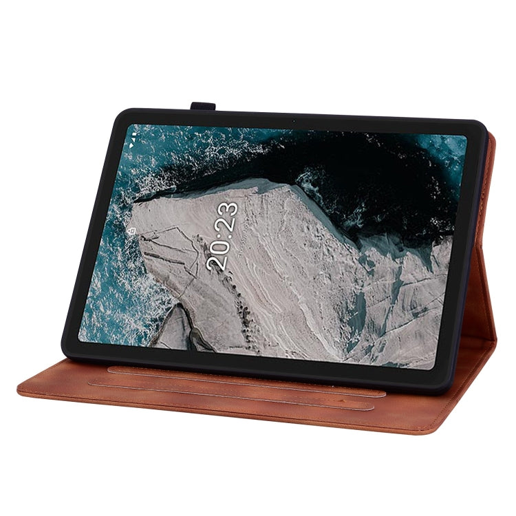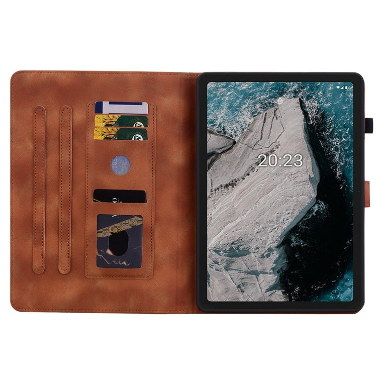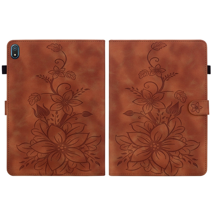 For Nokia T20 10.4 2021 Lily Embossed Leather Tablet Case(Brown)