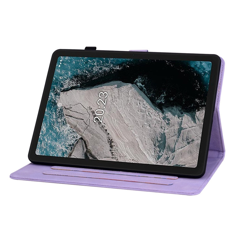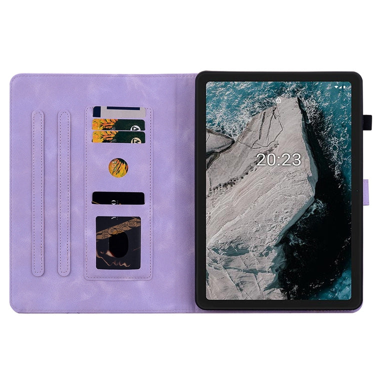For Nokia T20 10.4 2021 Lily Embossed Leather Tablet Case(Purple)