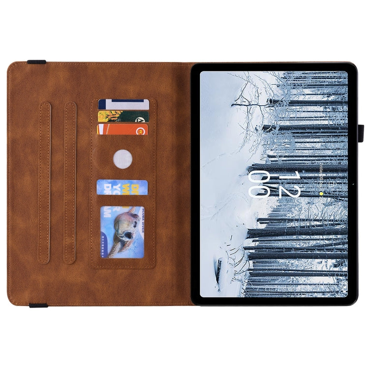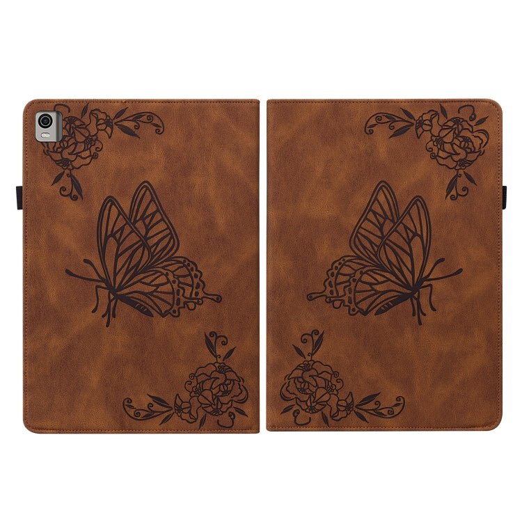 For Nokia T21 Butterfly Flower Embossed Leather Tablet Case(Brown)