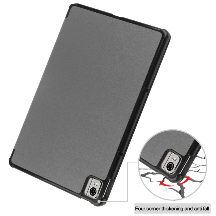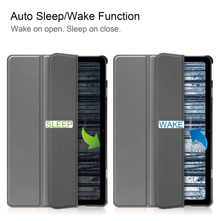 For Nokia T21 Custer Pure Color 3-Fold Holder Leather Smart Tablet Case(Grey)