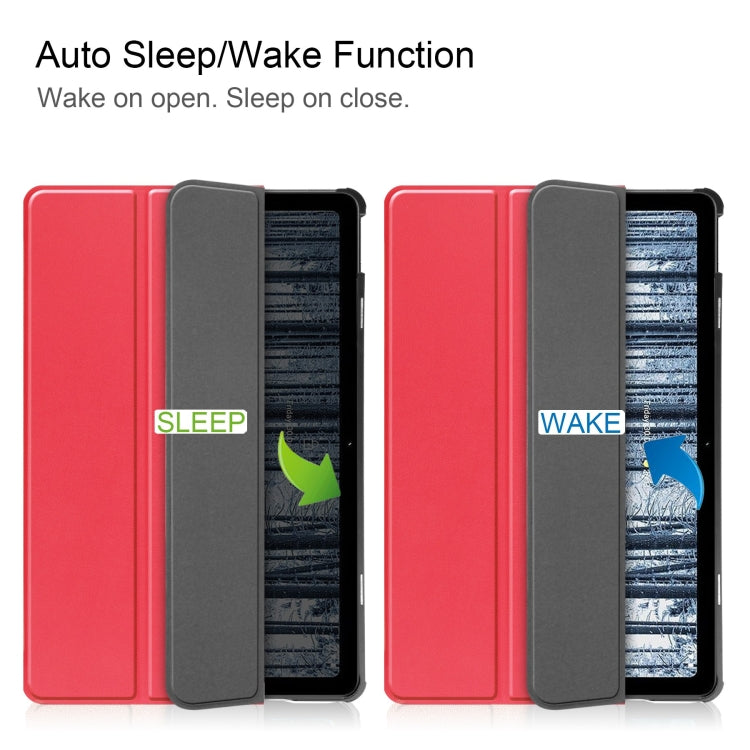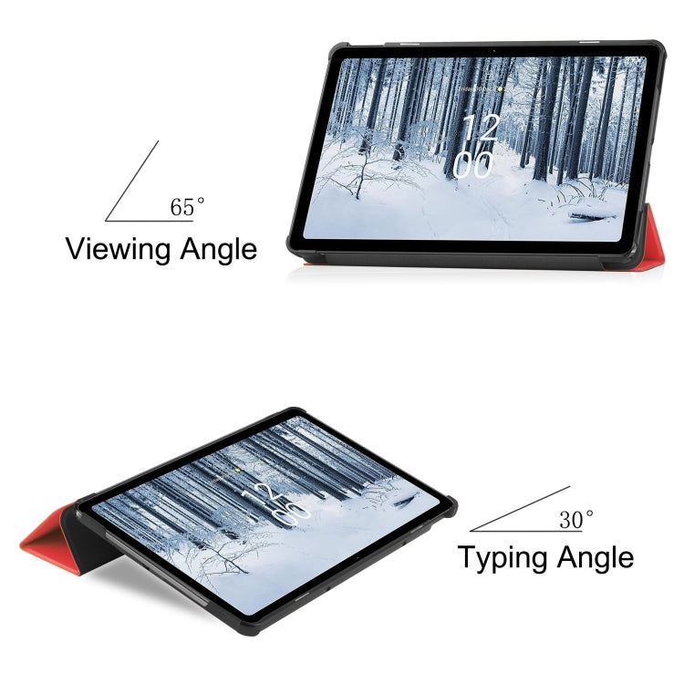 For Nokia T21 Custer Pure Color 3-Fold Holder Leather Smart Tablet Case(Red)