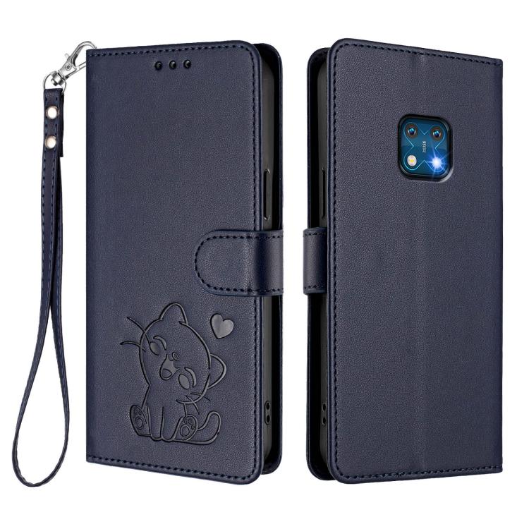 For Nokia XR20 Embossed Heart Cat Leather Phone Case with Hand Strap(Blue)
