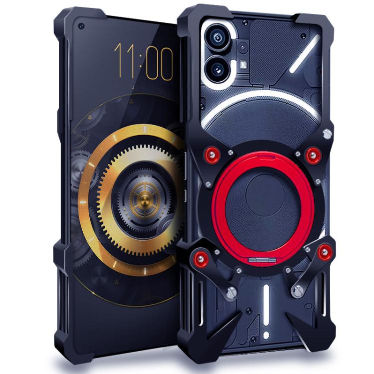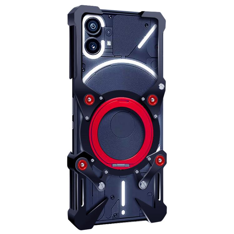 For Nothing Phone 1 Rotating Bracket Hollow Metal Phone Case with Lanyard(Black)