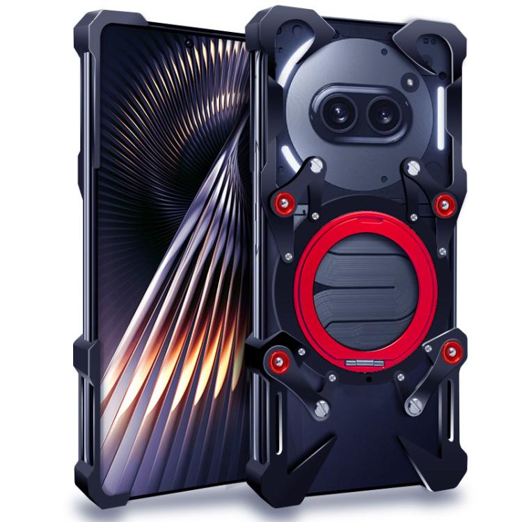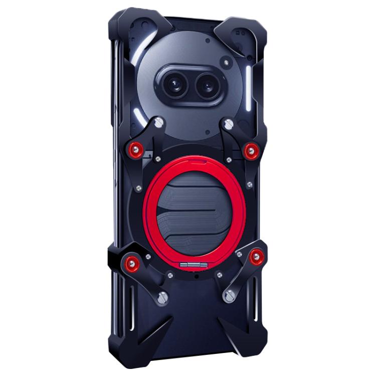 For Nothing Phone 2a Rotating Bracket Hollow Metal Phone Case with Lanyard(Black)
