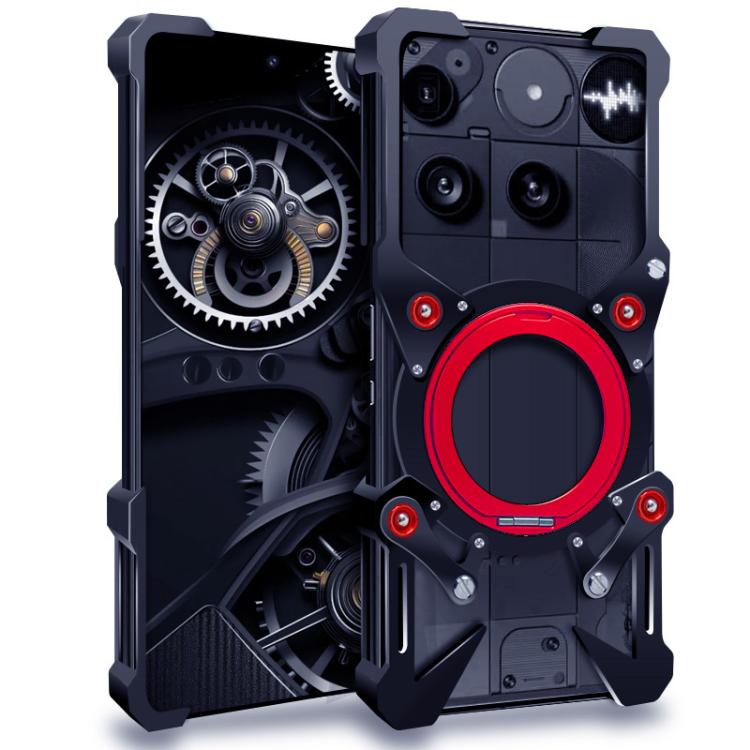 For Nothing Phone 3 Rotating Bracket Hollow Metal Phone Case with Lanyard(Black)
