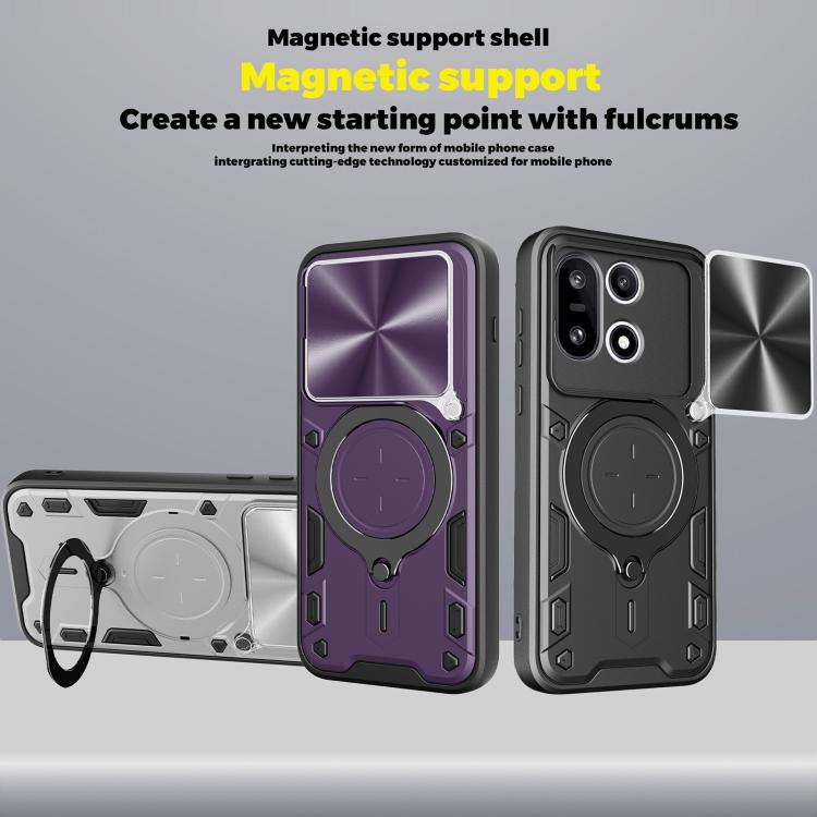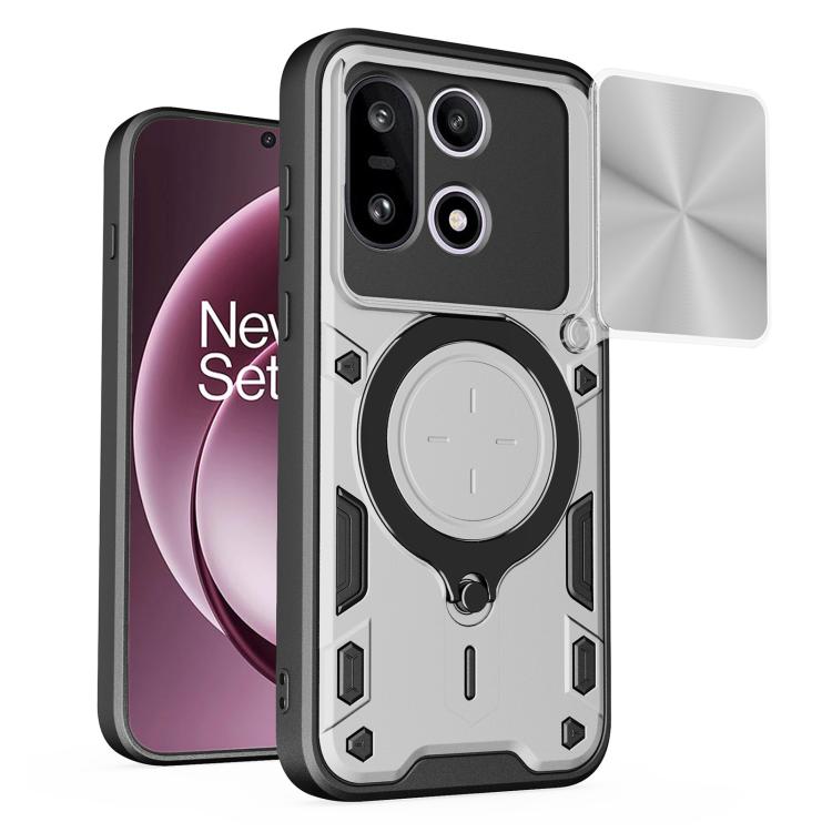 For OnePlus 15 5G CD Texture Sliding Camshield Magnetic Holder Phone Case(Silver)