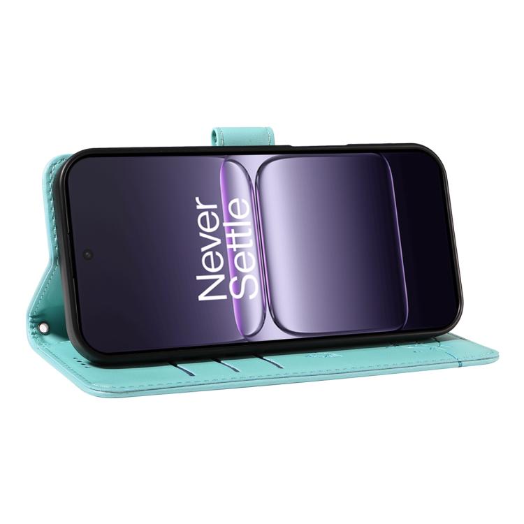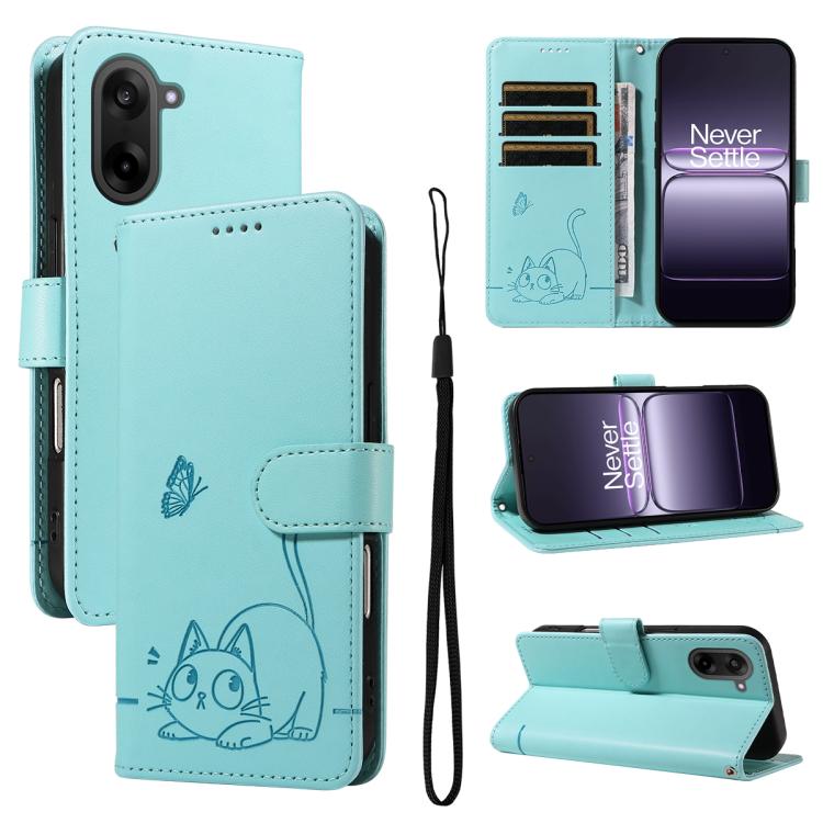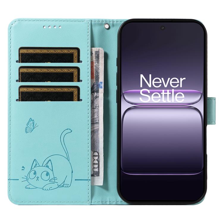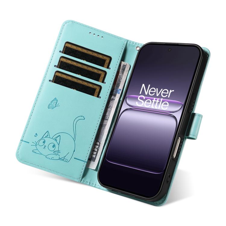 For OnePlus Ace 5 Racing / Nord CE5 Adorable Cat Embossed Pattern Flip Leather Phone Case(Green)