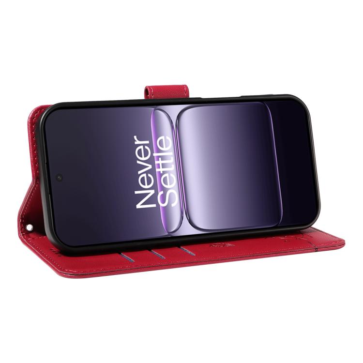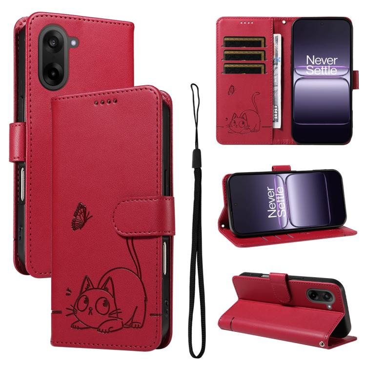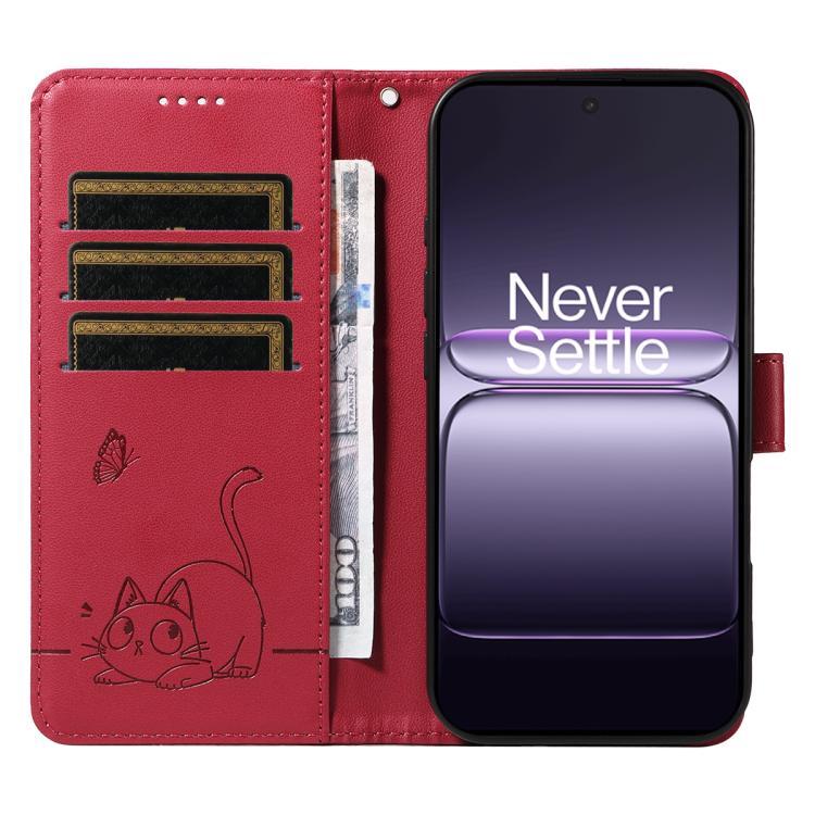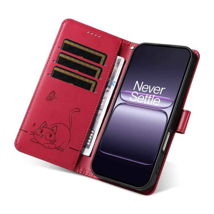 For OnePlus Ace 5 Racing / Nord CE5 Adorable Cat Embossed Pattern Flip Leather Phone Case(Red)
