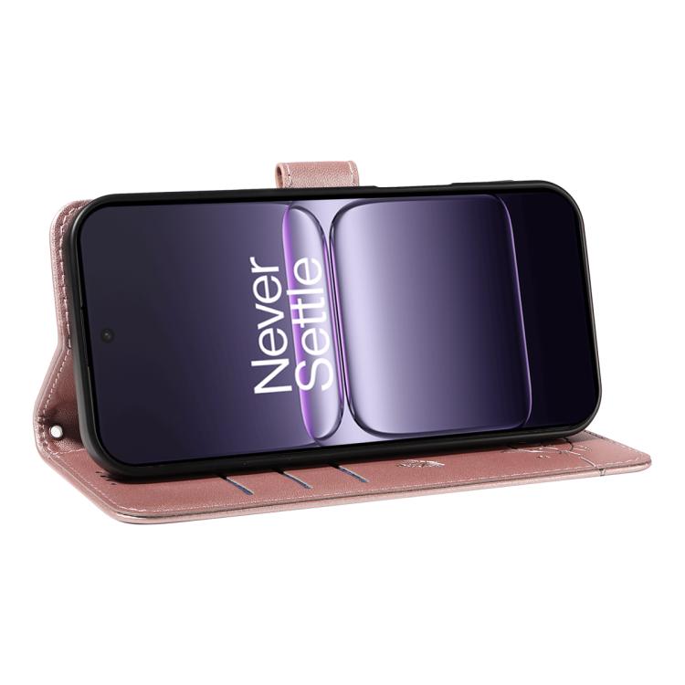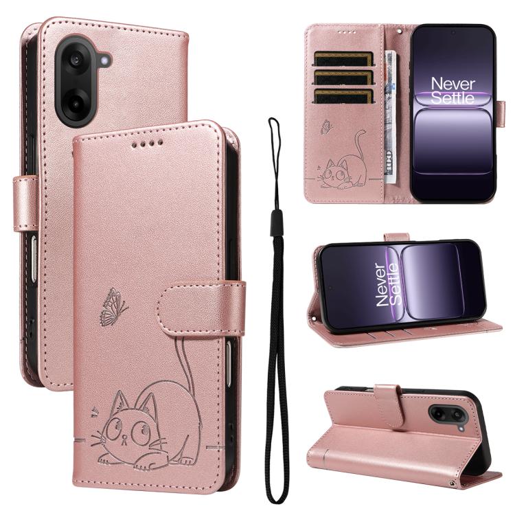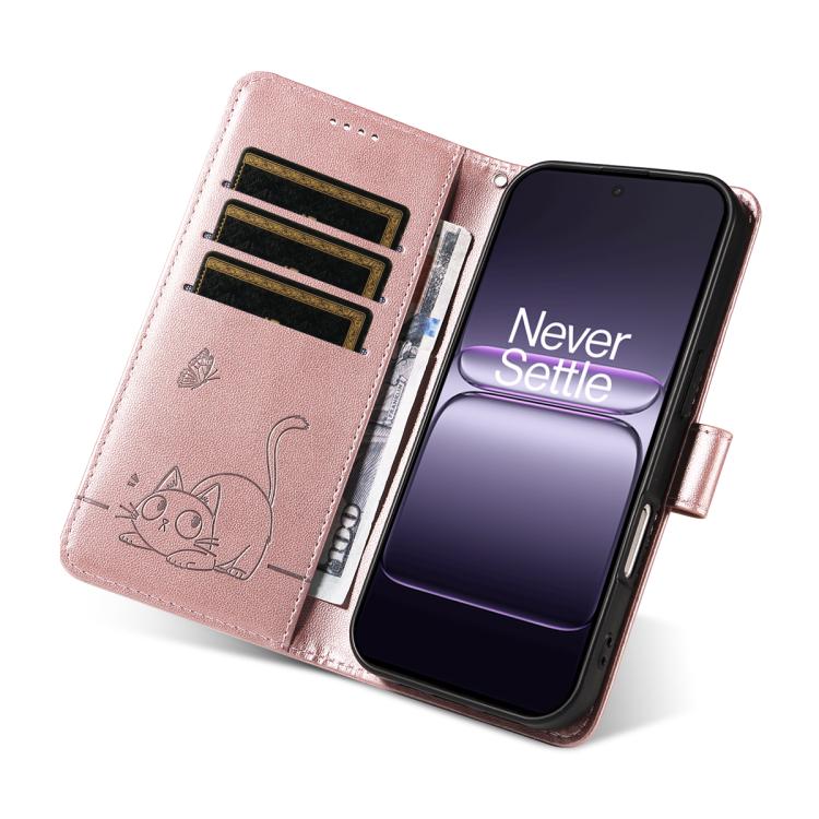 For OnePlus Ace 5 Racing / Nord CE5 Adorable Cat Embossed Pattern Flip Leather Phone Case(Rose Gold)
