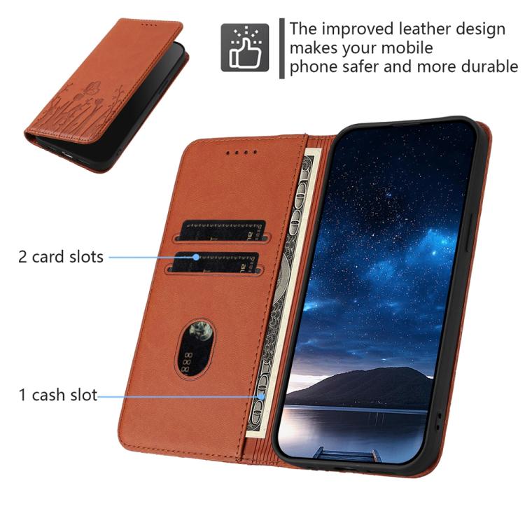 For OnePlus Ace 5 Racing / Nord CE5 Tulips Butterfly Pattern Magnetic Vegan Leather Phone Case(Coffee)