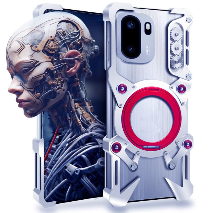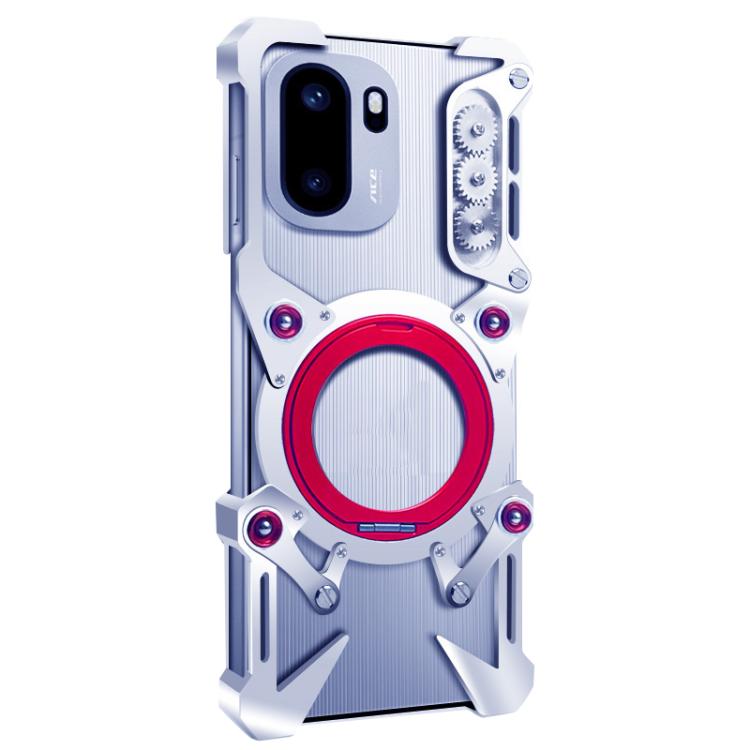 For OnePlus Ace 6 Rotating Bracket Hollow Metal Phone Case with Lanyard(Silver)