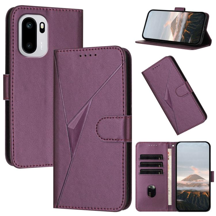 For OnePlus Ace 6 Triangle Pattern Buckle Clasp Leather Phone Case(Dark Purple)