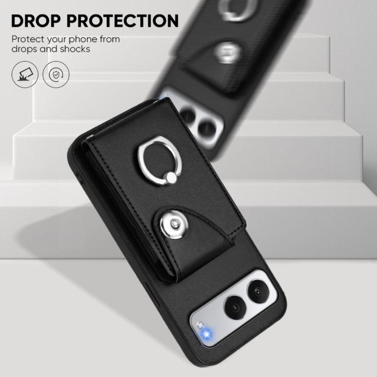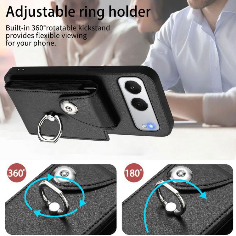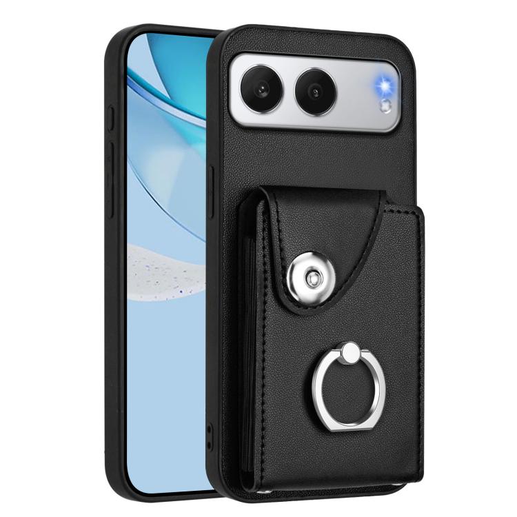 For OnePlus Nord 4 Organ Card Bag Ring Holder PU Phone Case(Black)