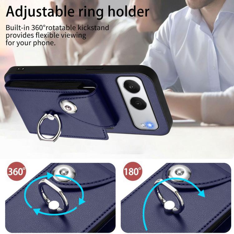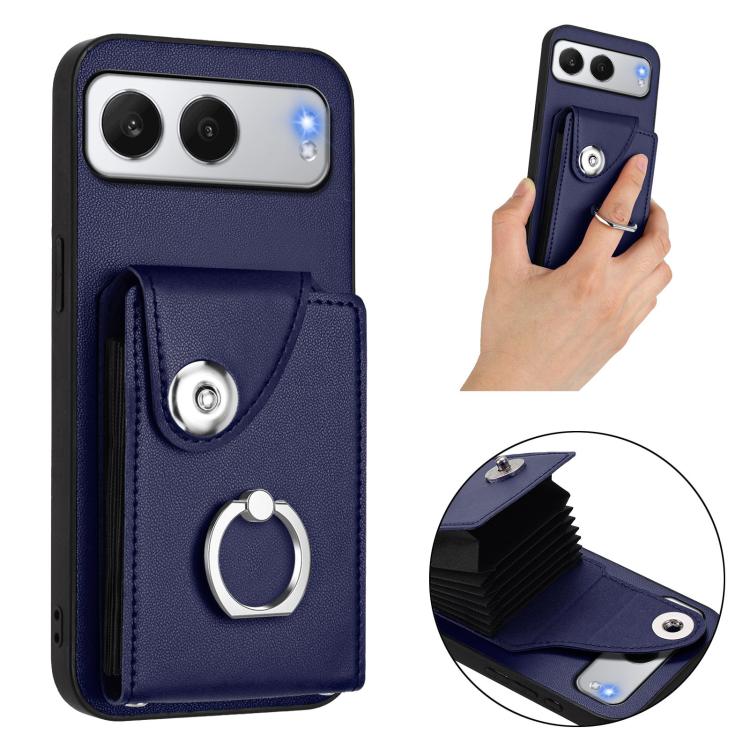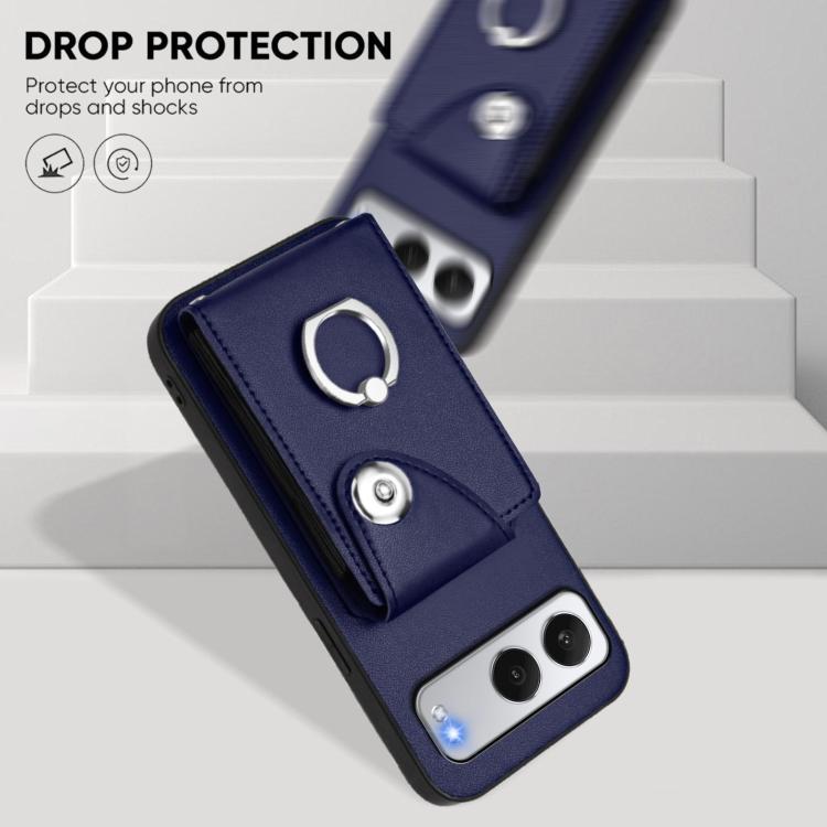 For OnePlus Nord 4 Organ Card Bag Ring Holder PU Phone Case(Blue)
