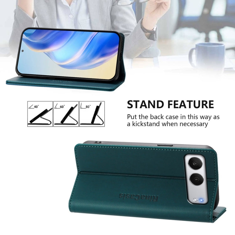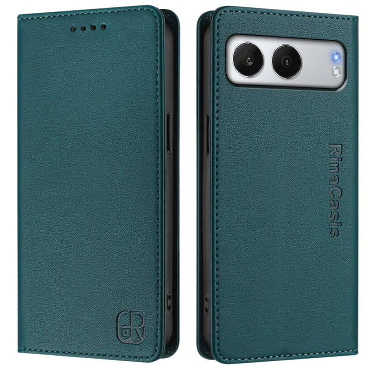 For OnePlus Nord 4 RC01 Dual-Folded Magnetic Suction RFID Leather Phone Case(Dark Green)