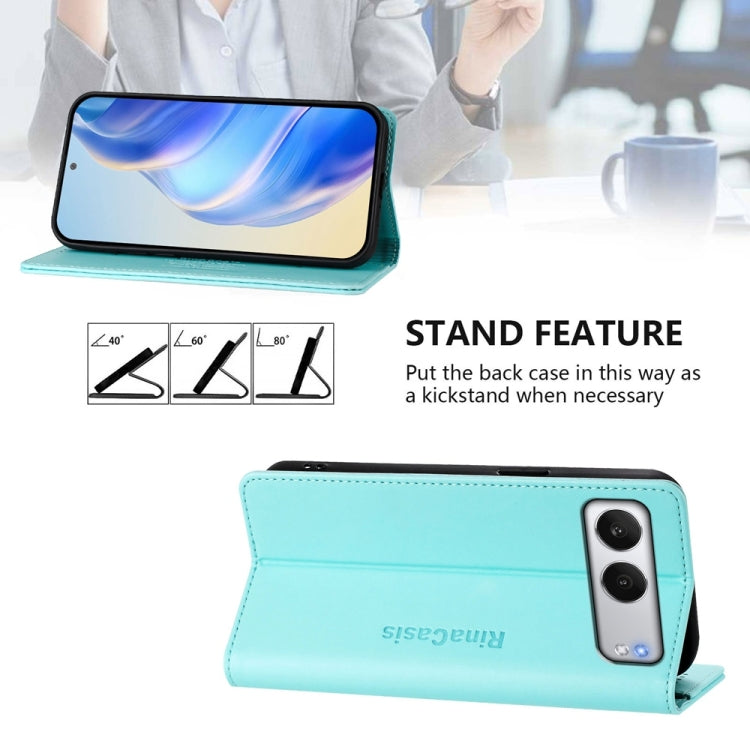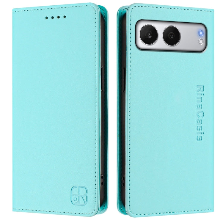 For OnePlus Nord 4 RC01 Dual-Folded Magnetic Suction RFID Leather Phone Case(Mint Green)