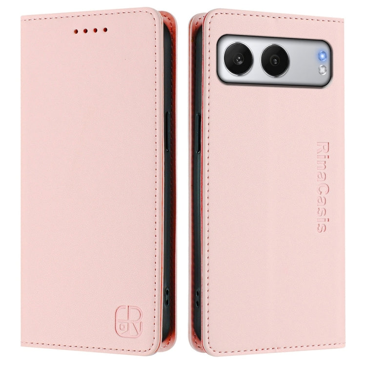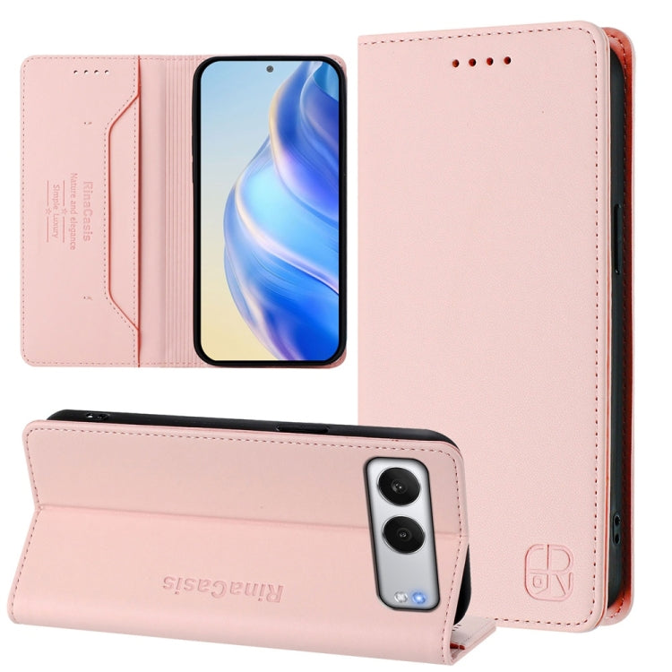 For OnePlus Nord 4 RC01 Dual-Folded Magnetic Suction RFID Leather Phone Case(Pink)