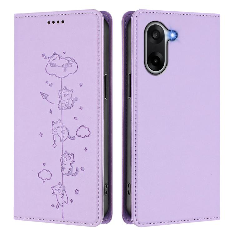 For OnePlus Nord CE5 / Ace 5 Racing Cute Cats Embossed Magnetic RFID Vegan Leather Phone Case(Light Purple)