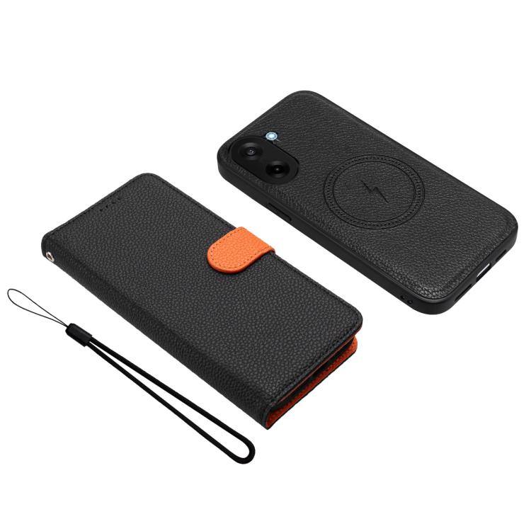 For OnePlus Nord CE5 / Ace 5 Racing Detachable Litchi Texture Magnetic Vegan Leather Phone Case(Black+Orange)