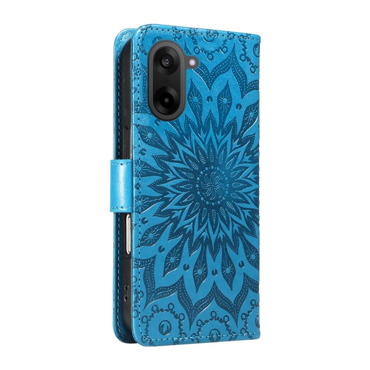 For OnePlus Nord CE5 Embossed Sunflower Pattern Flip Leather Phone Case(Blue)