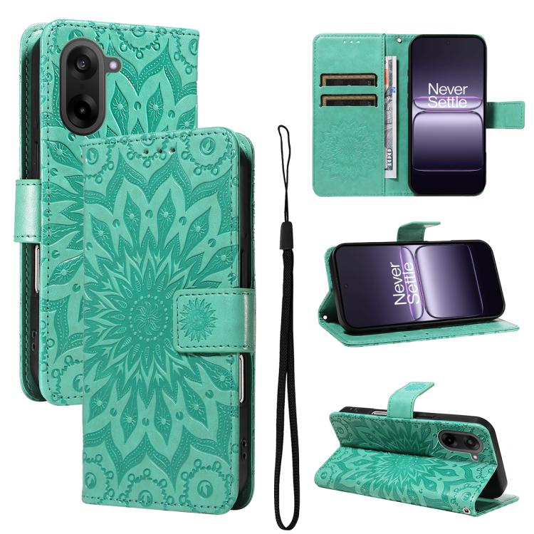 For OnePlus Nord CE5 Embossed Sunflower Pattern Flip Leather Phone Case(Green)