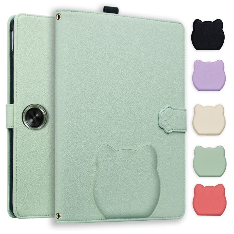 For OnePlus Pad GO / OPPO Pad Air 2 2023 Cat Skin-feel Litchi Leather Tablet Case(Green)