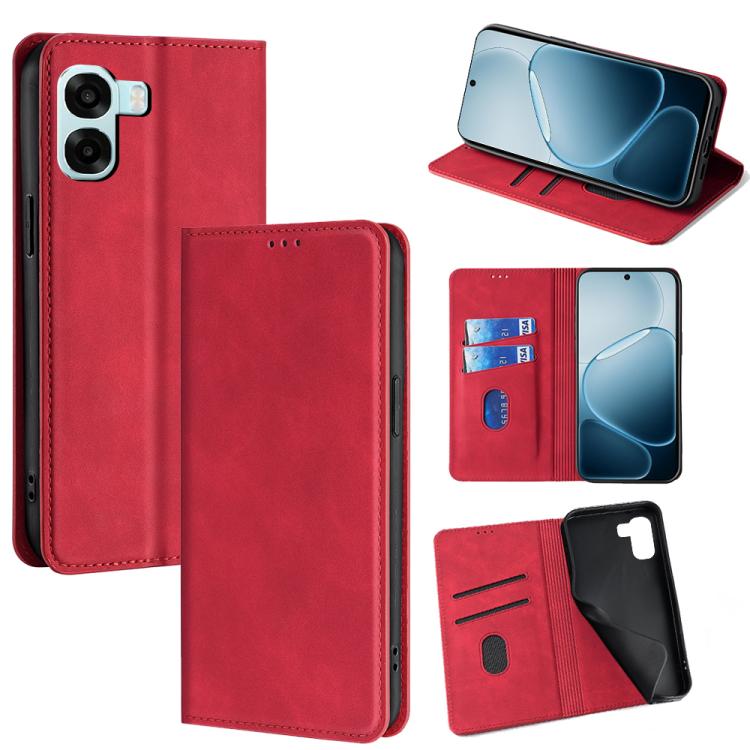 For OPPO A6x 4G Global Skin Feel Magnetic Leather Phone Case(Red)