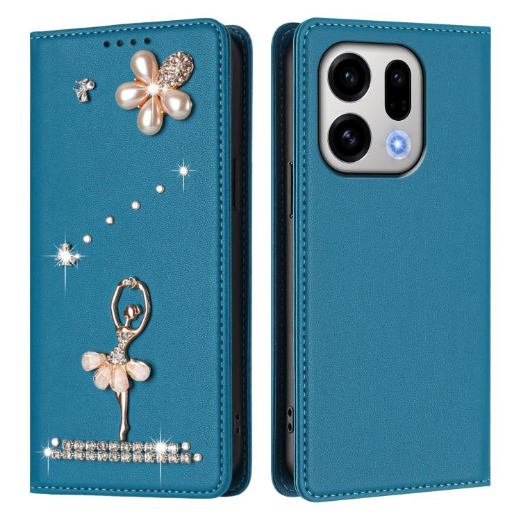 For OPPO Find X9 Ballet Girl Diamond Studded RFID Vegan Leather Phone Case(Lake Blue)