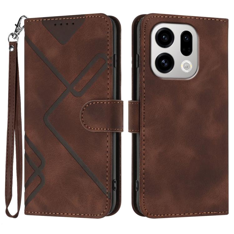 For OPPO Find X9 Line Pattern Skin Feel Leather Phone Case(Coffee)