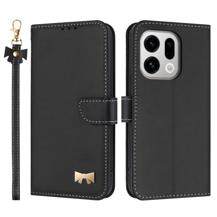 For OPPO Find X9 Metal Bow Leather Phone Case with Hand Strap(Black)