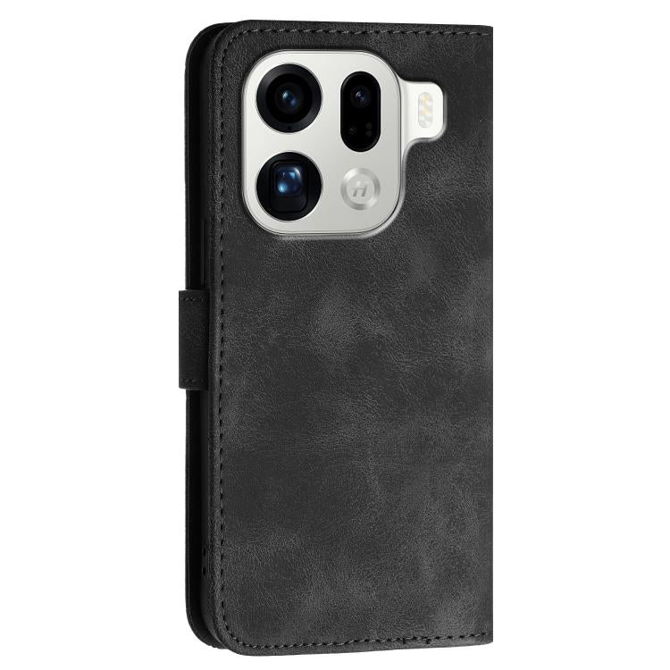 For OPPO Find X9 Pro Grid Butterfly Embossed Pattern Leather Phone Case with Lanyard(Black)