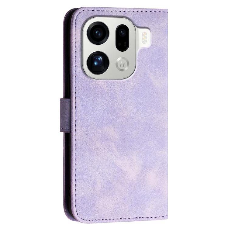 For OPPO Find X9 Pro Grid Butterfly Embossed Pattern Leather Phone Case with Lanyard(Light Purple)