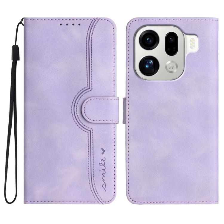 For OPPO Find X9 Pro Heart Pattern Skin Feel Leather Phone Case(Purple)