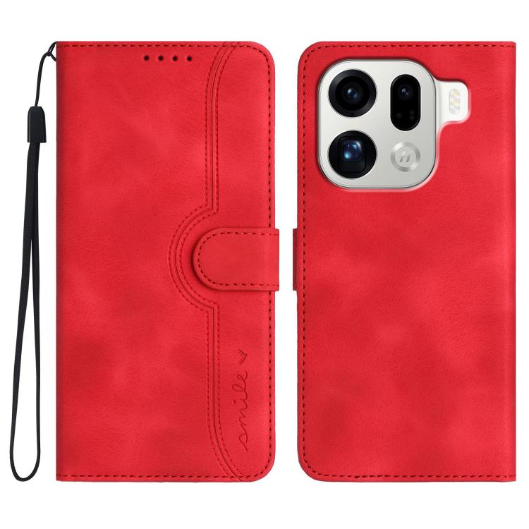 For OPPO Find X9 Pro Heart Pattern Skin Feel Leather Phone Case(Red)