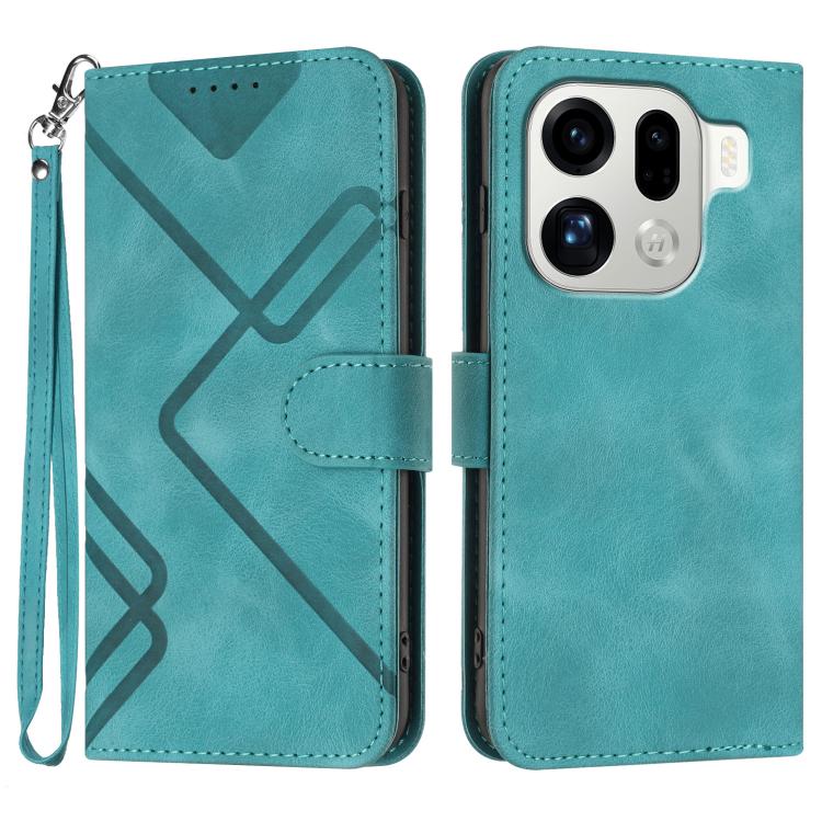 For OPPO Find X9 Pro Line Pattern Skin Feel Leather Phone Case(Light Blue)