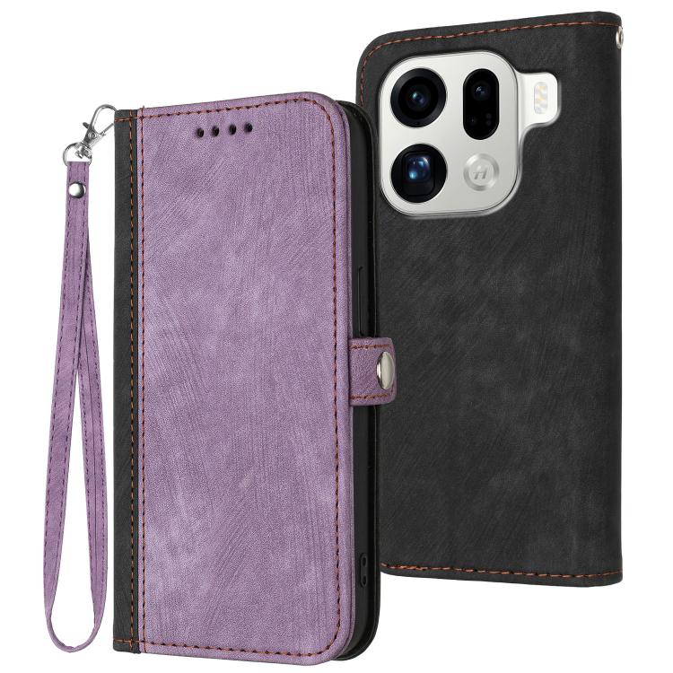 For OPPO Find X9 Pro Side Buckle Double Fold Hand Strap Leather Phone Case(Purple)