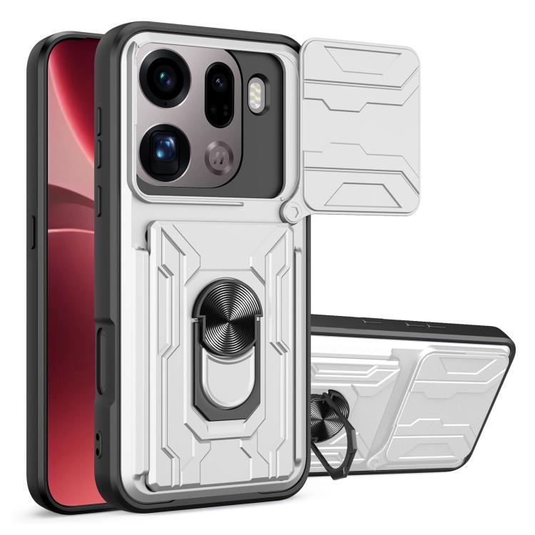 For OPPO Find X9 Pro Sliding Camshield TPU+PC Phone Case with Card Slot(White)