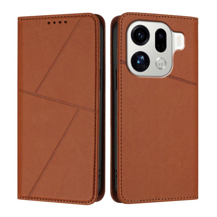 For OPPO Find X9 Pro Strong Magnetic Frosted Flip Leather Phone Case(Coffee Color)
