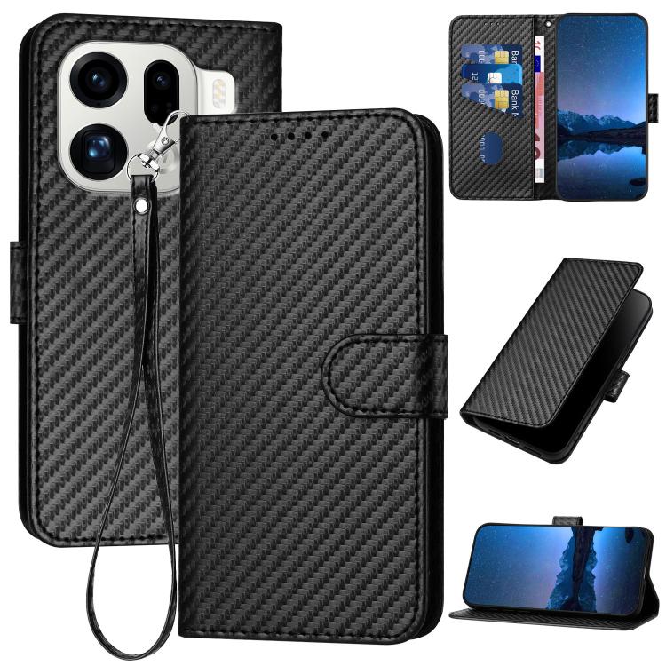 For OPPO Find X9 Pro YX0070 Carbon Fiber Buckle Leather Phone Case with Lanyard(Black)