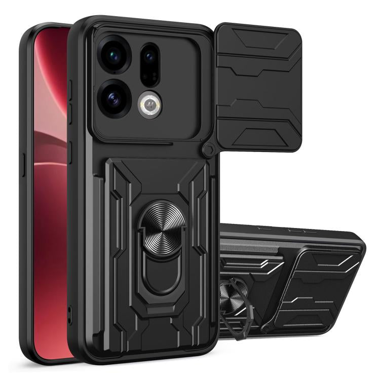 For OPPO Find X9 Sliding Camshield TPU+PC Phone Case with Card Slot(Black)