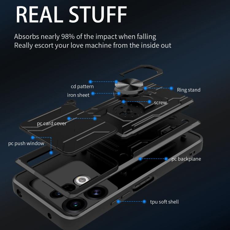 For OPPO Find X9 Sliding Camshield TPU+PC Phone Case with Card Slot(Grey)