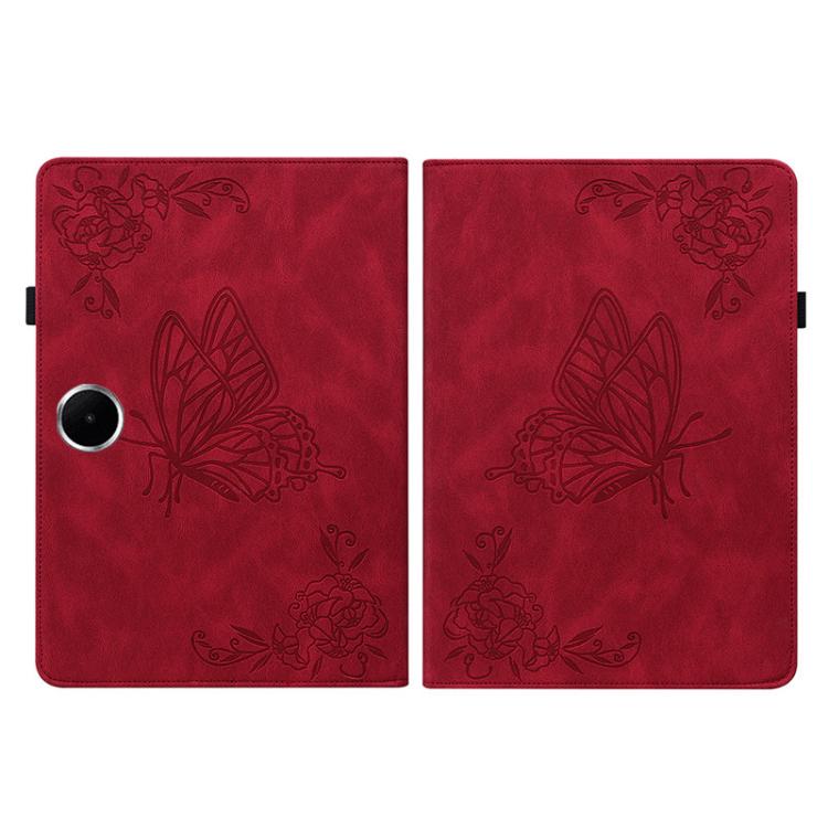 For OPPO Pad SE 11 inch Butterfly Flower Embossed Leather Tablet Case(Red)