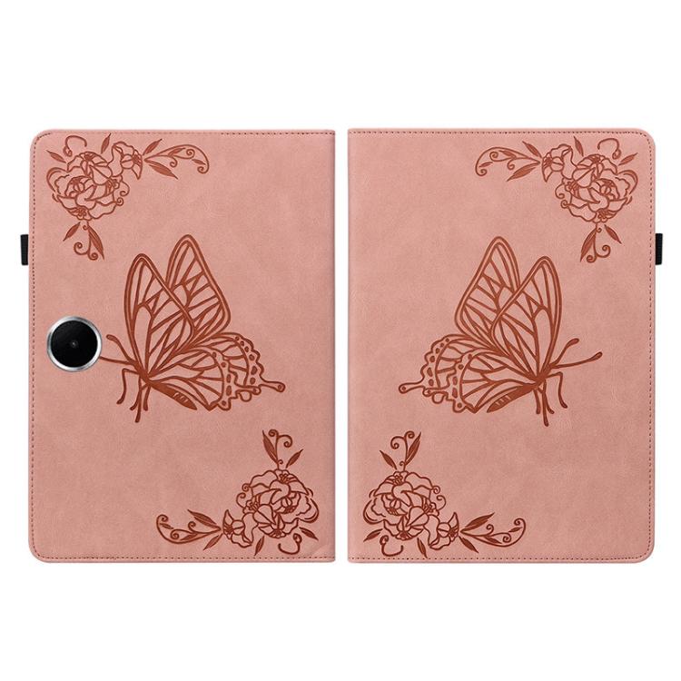 For OPPO Pad SE 11 inch Butterfly Flower Embossed Leather Tablet Case(Rose Gold)