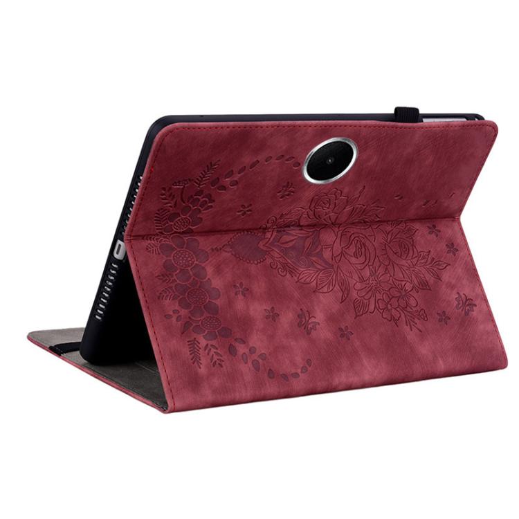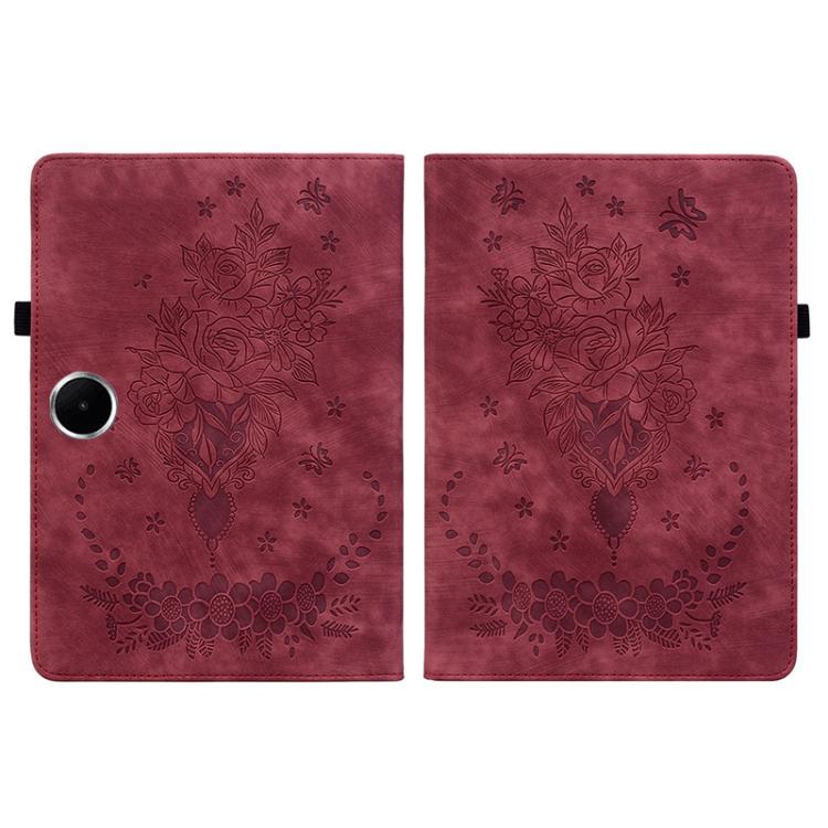 For OPPO Pad SE 11 inch Butterfly Rose Embossed Leather Tablet Case(Red)